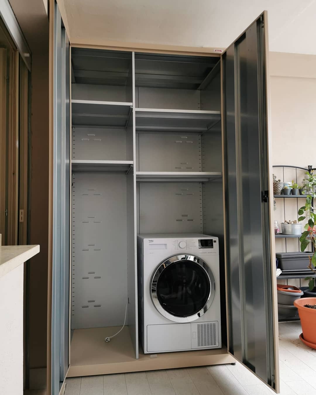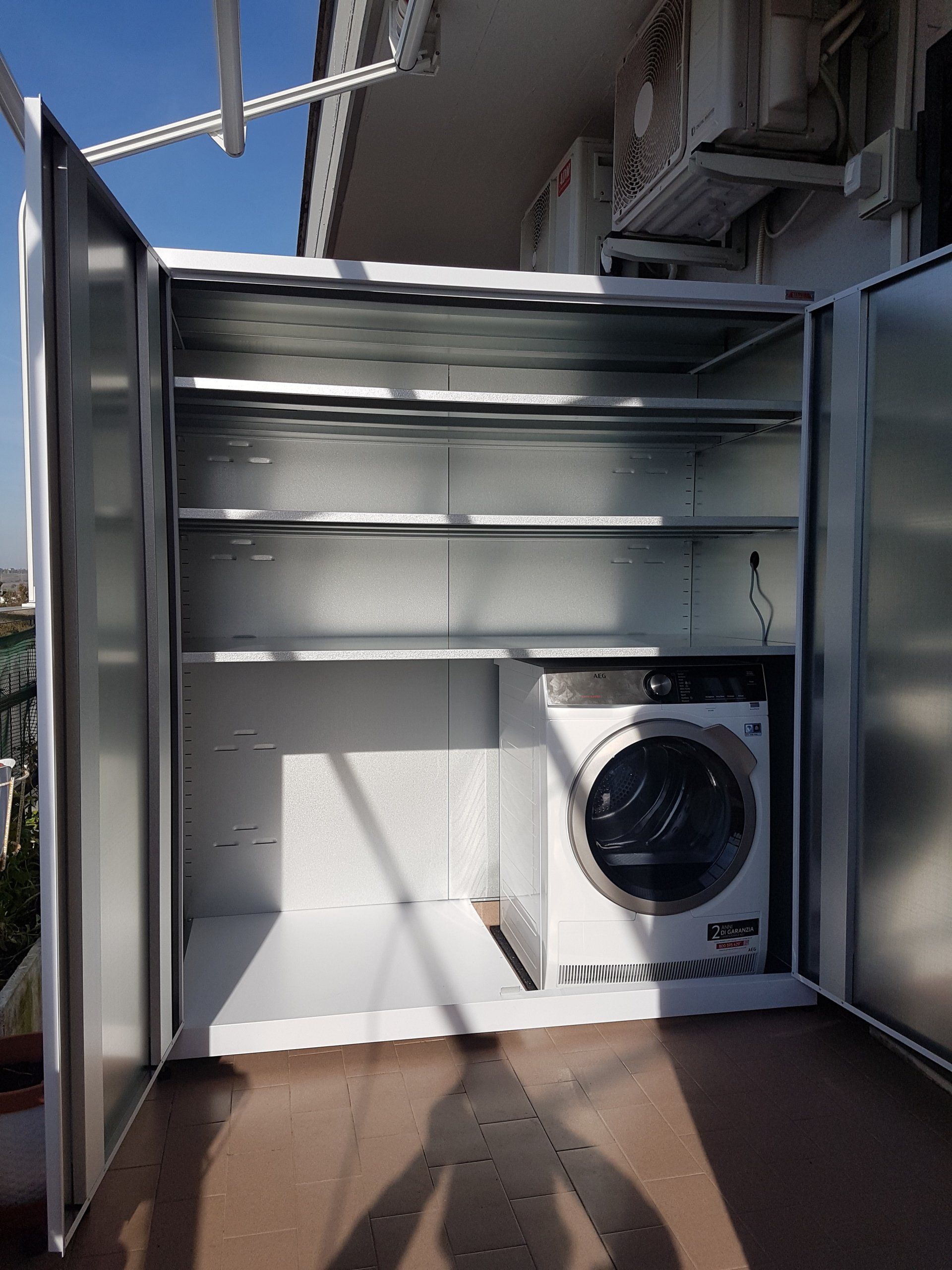Realizziamo armadi su misura per incassare una lavatrice e asciugatrice.